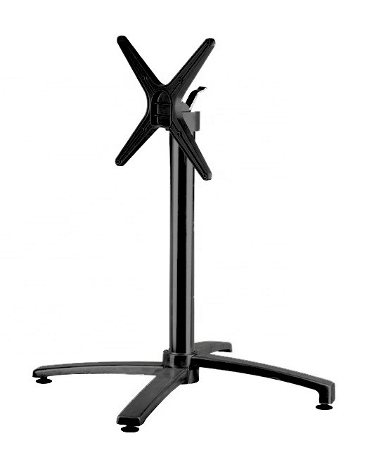 Base de mesa, sistema abatible, 4 brazos, aluminio, color negro. base de 68 x 68 cms. Altura 72 cms. Uso en exterior e interior.