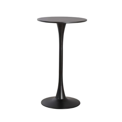 Mesa de diseño, alta, base de metal, tapa lacada en negro.
