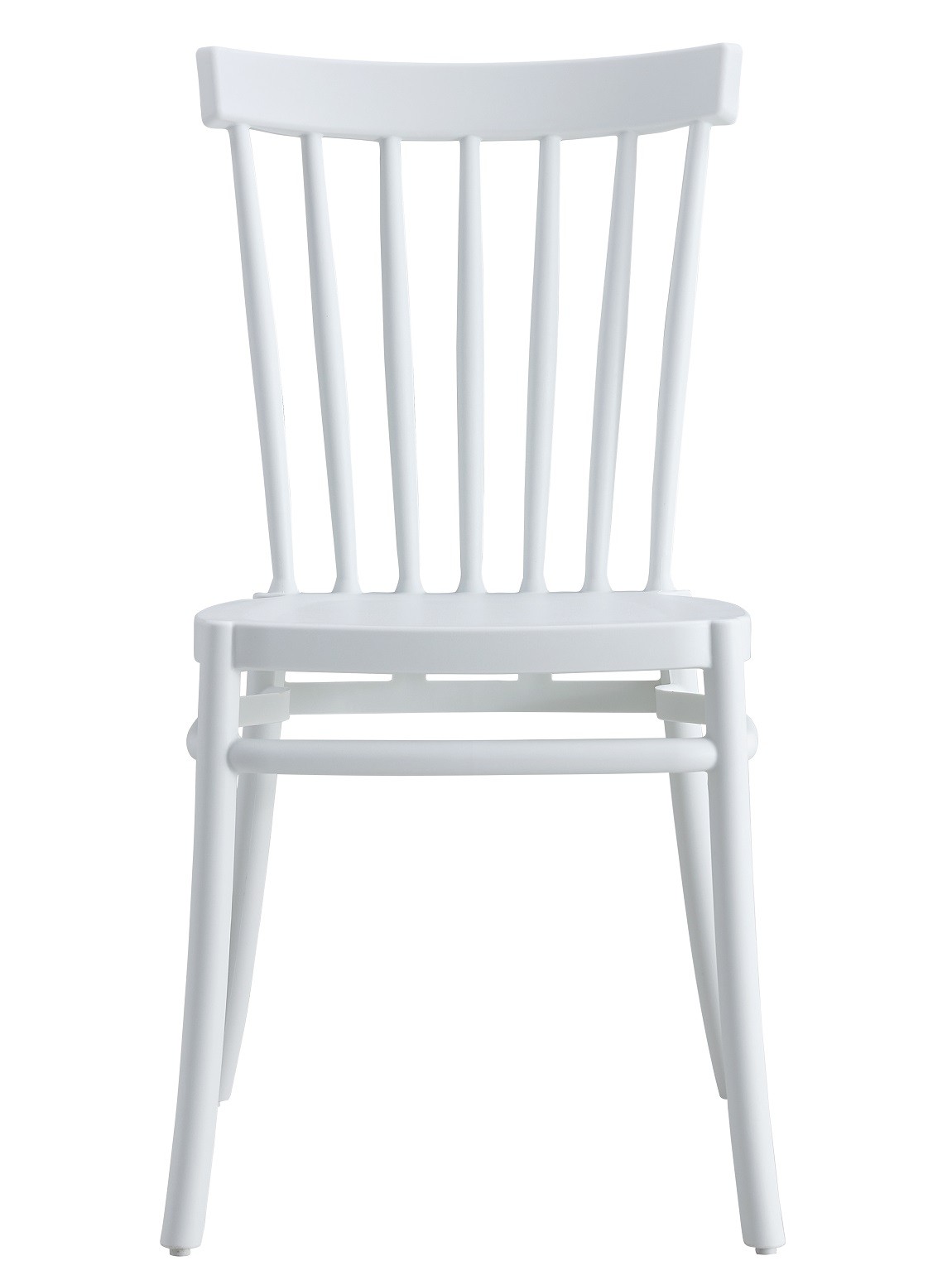 Silla apilable, tratamiento anti UV, polipropileno blanco, uso en exterior e interior. Otros colores disponibles. Taburete a juego