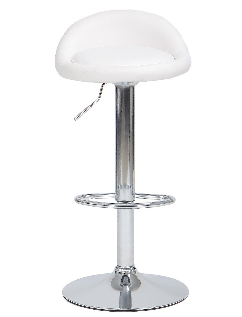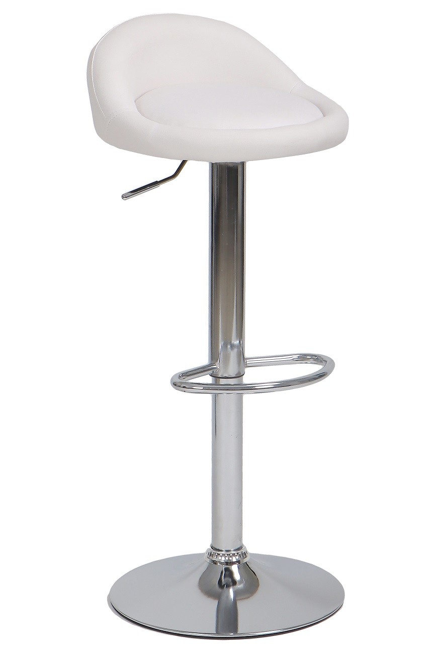 Taburete de diseño, regulable, cromado, similpiel blanca. Otros colores disponibles.